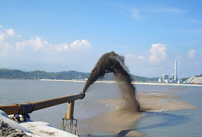 利用挖泥船將航道內的泥土挖出后,使用管線將挖出的泥土排放到需要進行回填的港口或碼頭上,通過泥土回填的方式來使港口和碼頭填筑到需要建設的高度,這便是吹填工程。